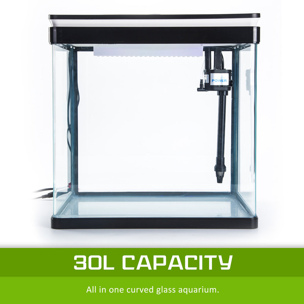 - Capacity of 30L all in one Curved Glass aquarium fish tank